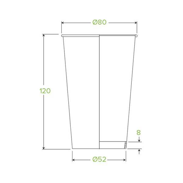 12oz Coffee Cups Kraft Green Line (80mm) Single Wall - BioPak