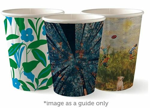PLEASE NOTE: Cup artwork might differ as we feature different artists every 3 months. Pictured here are designs from the latest Art Series. Unfortunately, we cannot sell individual art cups and cannot guarantee which prints, or which series of prints will be in each carton.