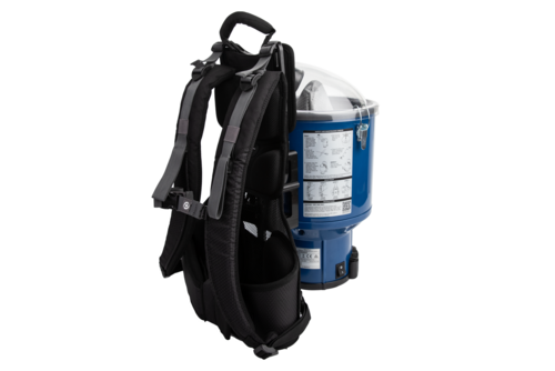 Superpro backpack vacuum provides the user with freedom, strong suction power and a pre-motor cone filter to deliver high productivity and a deep clean for large scale commercial environments.