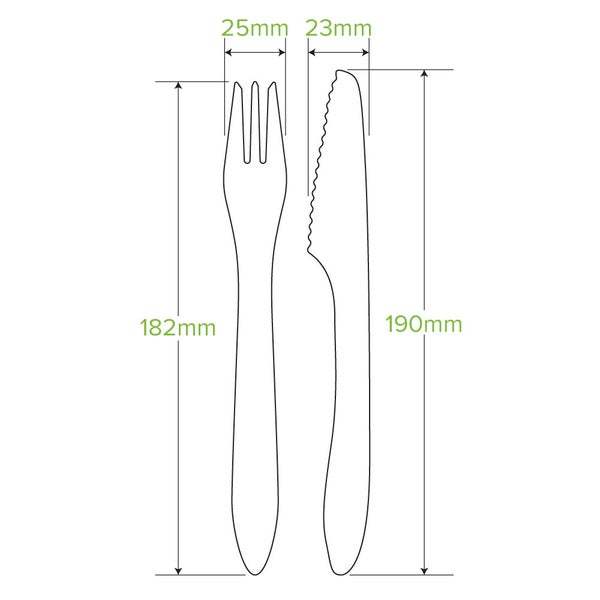 Our 19cm knife, fork & napkin coated wood cutlery set is made from sustainably sourced FSC™ 100% certified birchwood. Our coated range has been coated with a food safe, non-toxic, compostable plant-based carnauba wax. This disposable cutlery set is compostable and carbon neutral. Our takeaway cutlery sets are a more eco-friendly alternative to plastic cutlery sets.