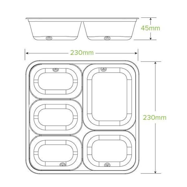 5 Compartment BioCane Takeaway Base LARGE, Natural - BioPak