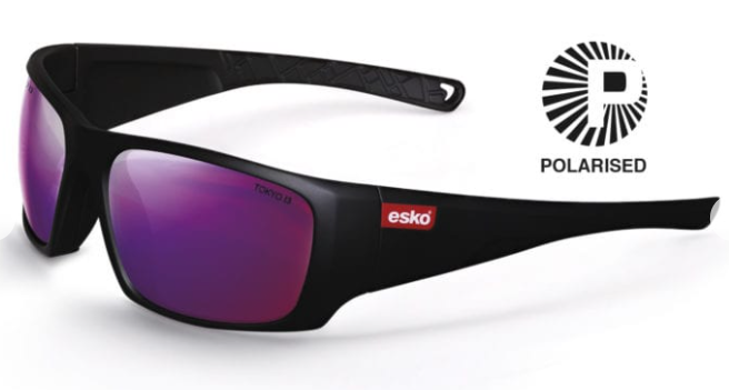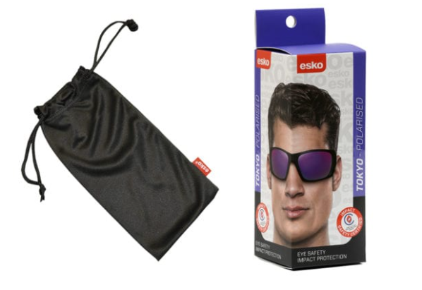 TOKYO Safety Glasses, Matt Black Frame, Polarised Lilac Mirror Lens - Esko