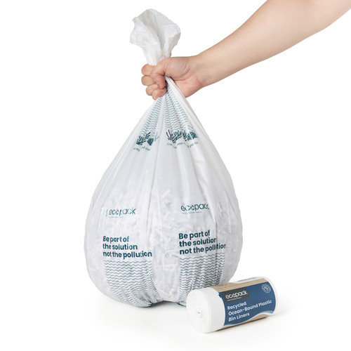 36L Large Ocean-Bound Recycled Plastic Bin Liners (White) Carton (600 Bags) – Ecopack