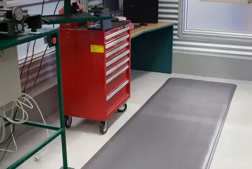 Fatigue Fighter’s remarkably durable, abrasion resistant surface and comfortable vinyl sponge base are created as a singular construction through a heat curing process. While this extraordinary dual density mat is much longer lasting than similar products, it remains one of our most economical anti-fatigue mats.