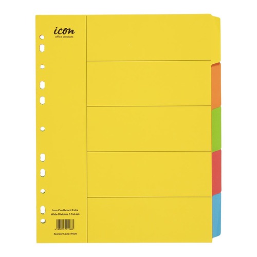 Icon Cardboard Dividers Extra Wide 5 Tab Coloured