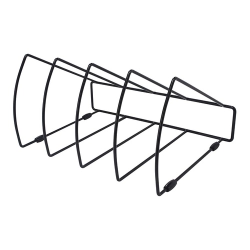 Okin Triangular File Rack with 4 slots to keep filing upright and tidy. Holds folders, files, books and magazines. 75mm wide slots with a bar at the back to prevent files slipping through. Manufactured in stainless steel with painted black finish. Rubber feet to protect furniture. Dimensions: 180 H x 360 W x 245mm D.
