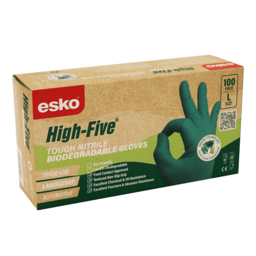 Make the eco-friendly choice with High-Five biodegradable disposable gloves. Your perfect companions for a variety of tasks, including trade-use, laboratory, cleaning, gardening, renovating, and automotive work.
