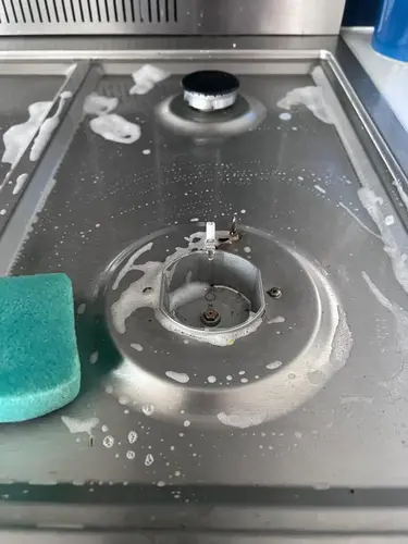 4. For heavy soiling, spray the surface down and leave on for 30-60 minutes. Scrub the surface with a non-scratch pad to remove heavy fatty deposits. Once softened then wipe the surface down.